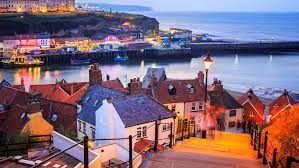 Whitby is a seaside town in Yorkshire, northern England, split by the River Esk. On the East Cliff, overlooking the North Sea, the ruined Gothic Whitby Abbey was Bram Stoker’s inspiration for “Dracula”. Nearby is the Church of St. Mary, reached by 199 steps. The Captain Cook Memorial Museum, in the house where Cook once lived, displays paintings and maps. West of town is West Cliff Beach, lined with beach huts. Be sure to check out the whale bones too!